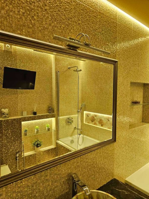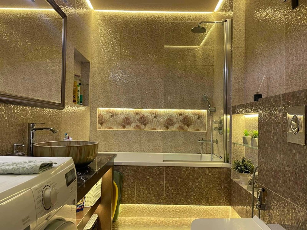Ванна кімната: німецька сантехніка, італійська пральна машина+сушка, додатково укомплектована плазмою з ефектом домашнього кінотеатру та «мультірум» з можливістю дистанційного керування.