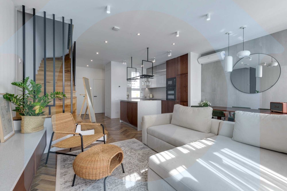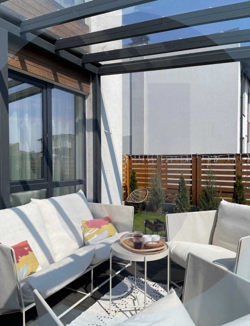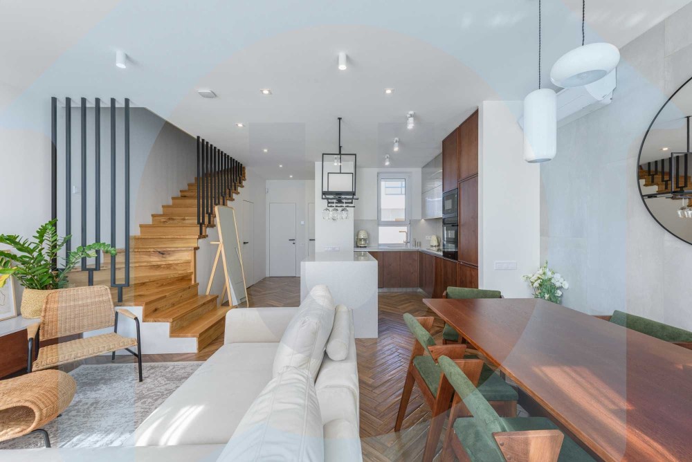 Трендом останніх років виступають будинки-таунхауси, що дуже стильно та насамперед комфортно. Будинок складається з кухні вітальні на першому поверсі з допоміжними приміщеннями. І двох спалень на другому, одна спальня з гардеробною. Два санвузли, один із душовою кабіною, другий із ванною. Планування дуже ергономічне.