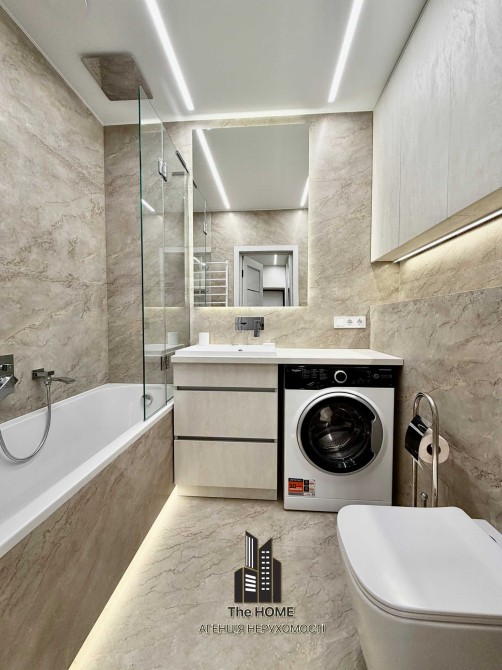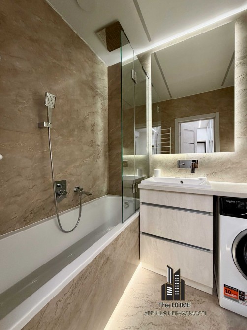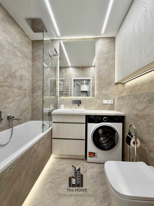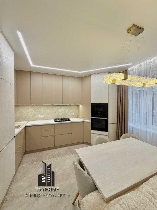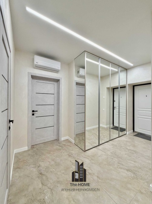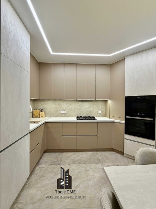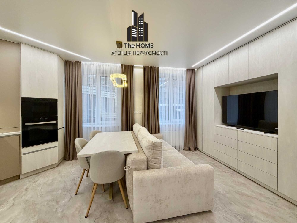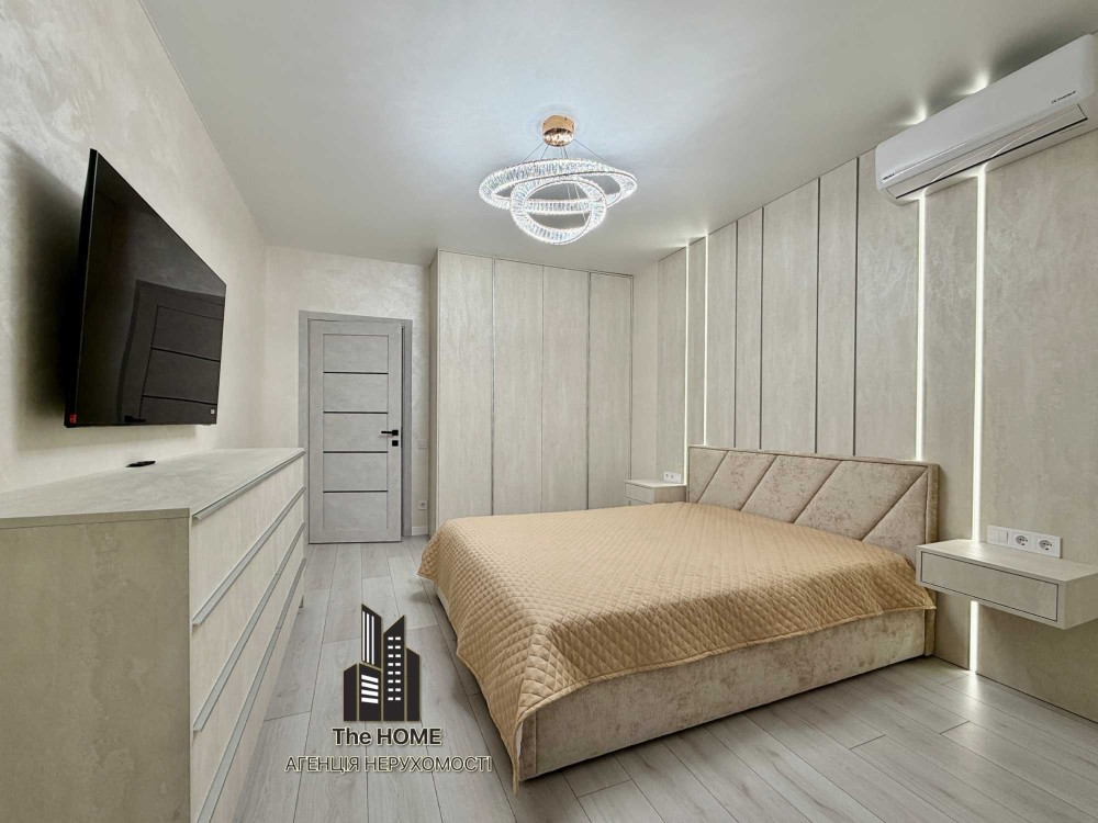 Інтер’єр виконаний у стильному сучасному дизайні з використанням якісних матеріалів. Простір продуманий до деталей: квартира повністю укомплектована меблями та технікою, готова до комфортного життя без додаткових вкладень.