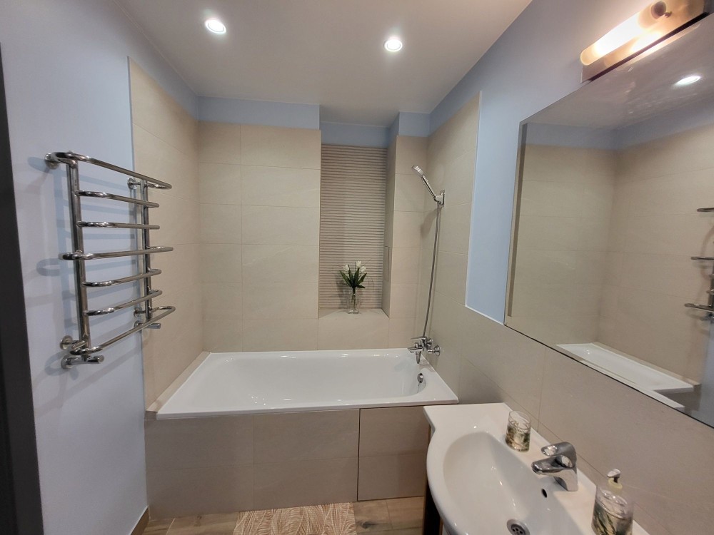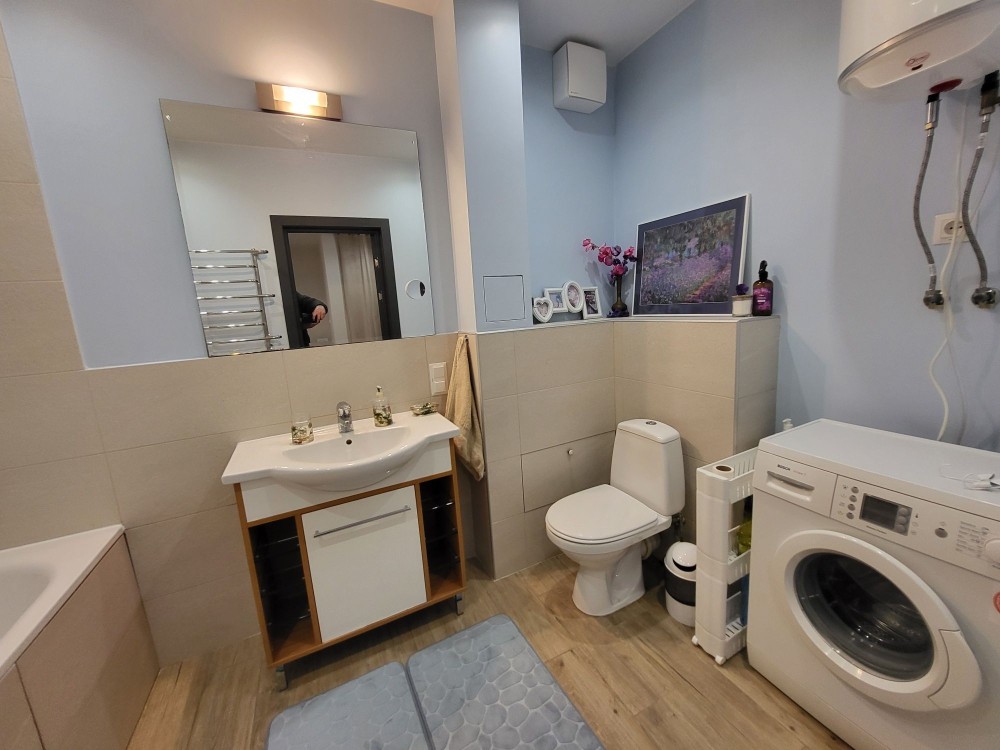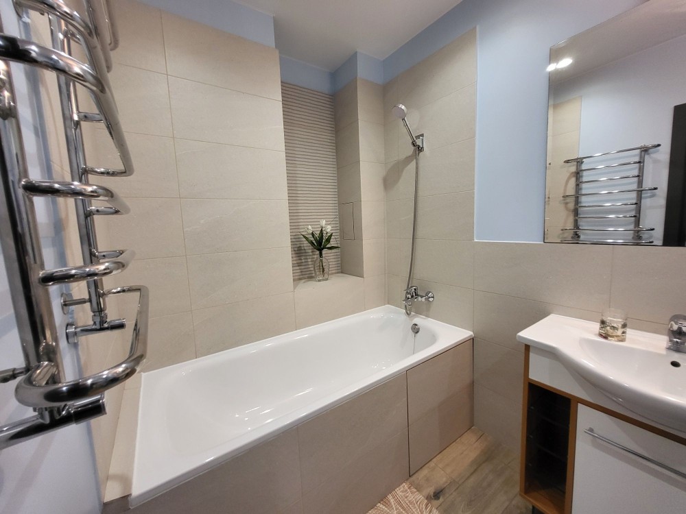 Санвузол (6,3 м²): ванна, бойлер, пральна машина, рушникосушильник