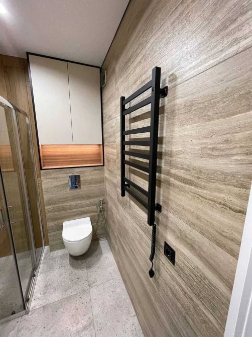 • Суміжний санвузол: душова кабіна, інсталяція, рукомийник, дзеркало з підсвіткою, пральна та сушильна машина, рушникосушка.