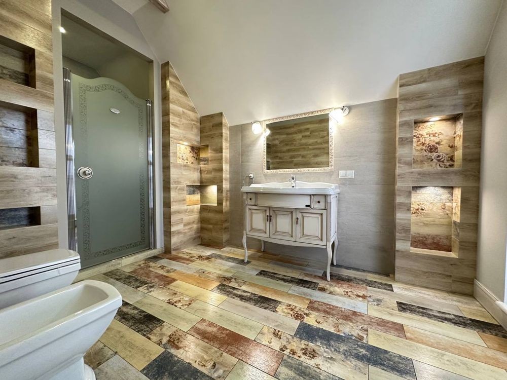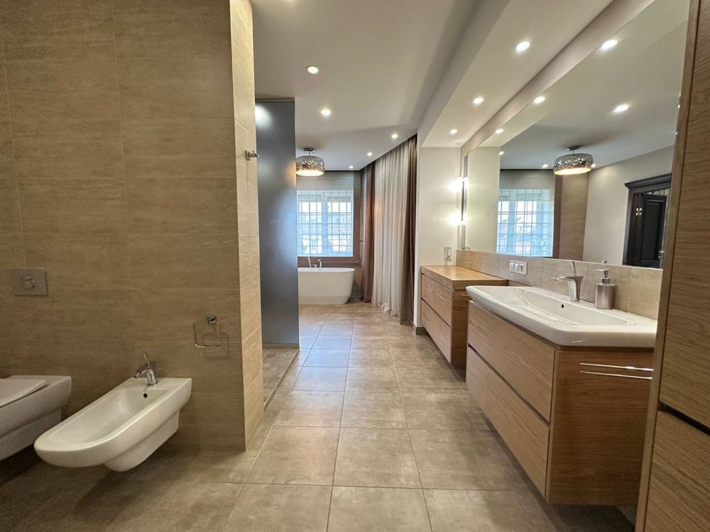 Другий поверх: 2 окремі спальні, великий санвузол, гардеробна, балкон, окрема кімната для електричної сауни з власним санвузлом та душом.