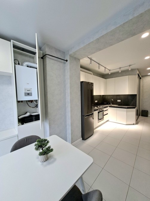 Квартира оснащена індивідуальним газовим опаленням. Також є електрика, центральна каналізація, газ, вивіз відходів, центральний водопровід. Асфальтована дорога. Квартира повністю укомплектована меблями і технікою. Встановлені два телевізори, кондиціонер, пральна машина, двоспальне ліжко, шафи. Є гарна кухня з меблями,газовою варильною панеллю, духовою шафою, мікрохвильовою піччю та холодильником.