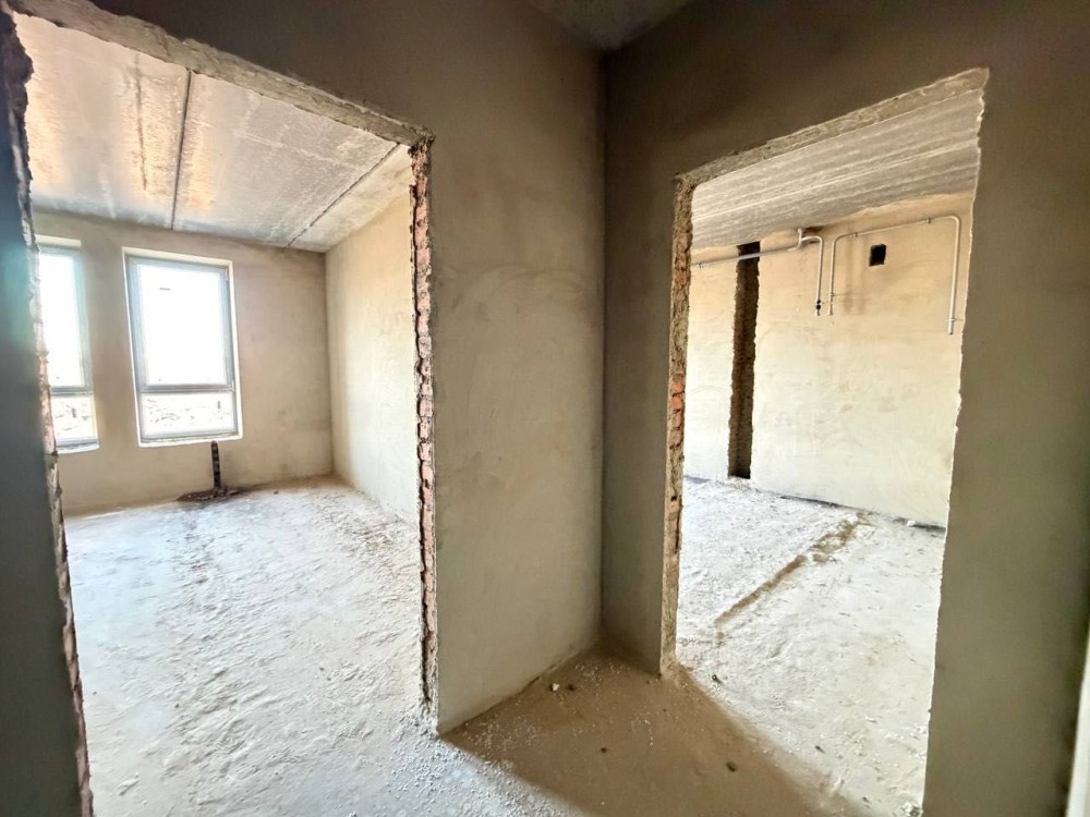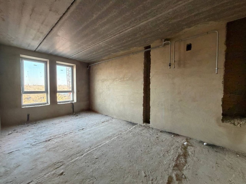 Стан після будівельників: чорнова штукатурка, чистова стяжка підлоги, встановлений газовий двоконтурний котел та встановлені радіатори. Розведені мокрі точки по квартирі.