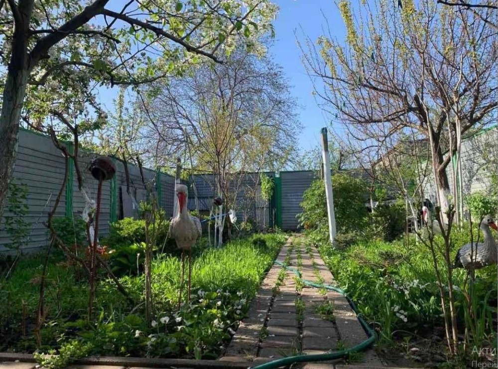 Возле дома сад с экзотическими плодовыми деревьями: 3 инжира, гранат, хурма Шарон, орешник, абрикос, груша, яблони, виноград, айва, орехи, декоративные кусты. В саду – водная скважина, вольер для собак, две большие будки. В доме есть большой амбар с качественными деревянными стеллажами. Зона для отдыха и барбекю под навесом, металлические большие качели.