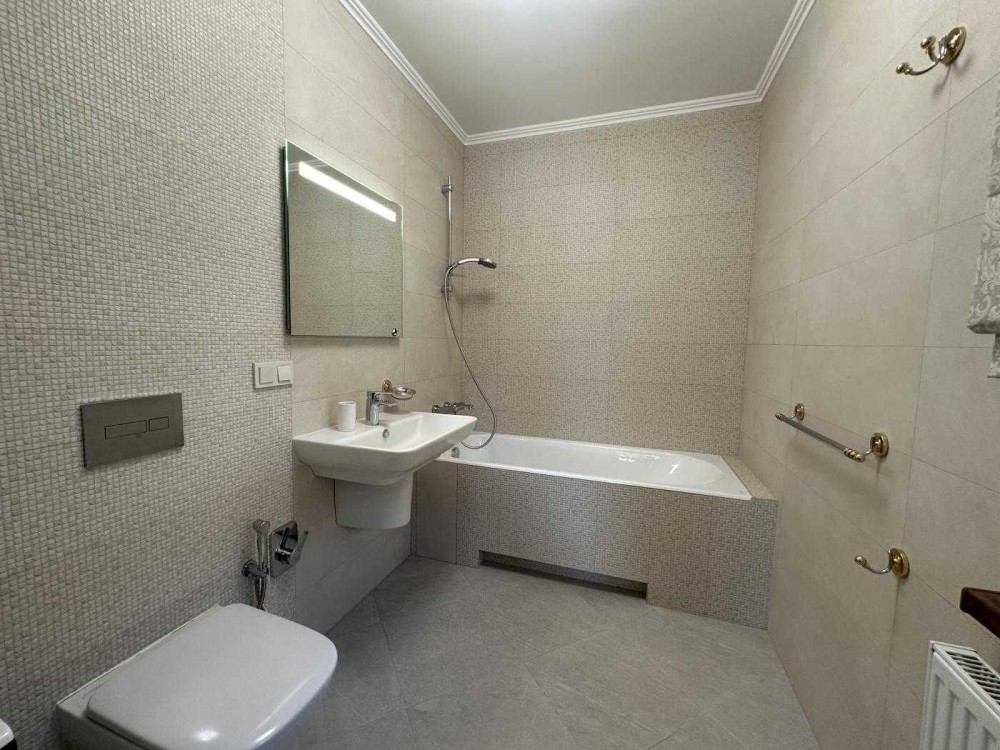 Санвузол суміжний, є ванна та душ. Влаштовано теплу підлогу на першому поверсі.