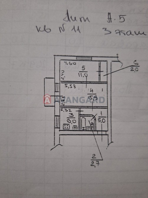 • Площадь кухни 5 м2
