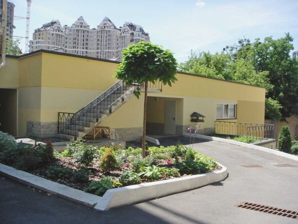 Закрытая территория, шлагбаум, круглосуточная охрана, видеонаблюдение. Центр города, посольский квартал, рядом метро Золотые ворота, выход к улицам Ярославов Вал, Липинского, Ивана Франка. Заезд с улицы Олеся Гончара.