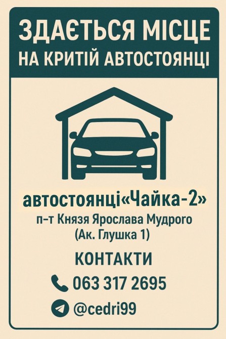 паркомісце на автостоянці «ЧАЙКА - 2» , п-т Князя Ярослава мудрого 1 - фото 1