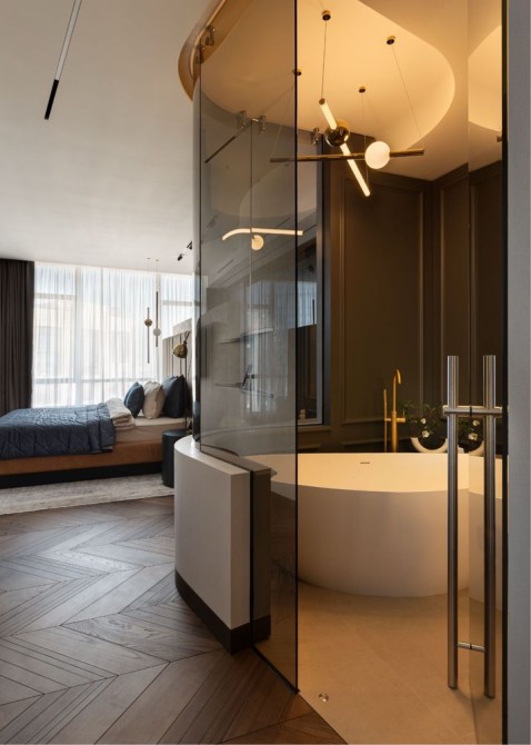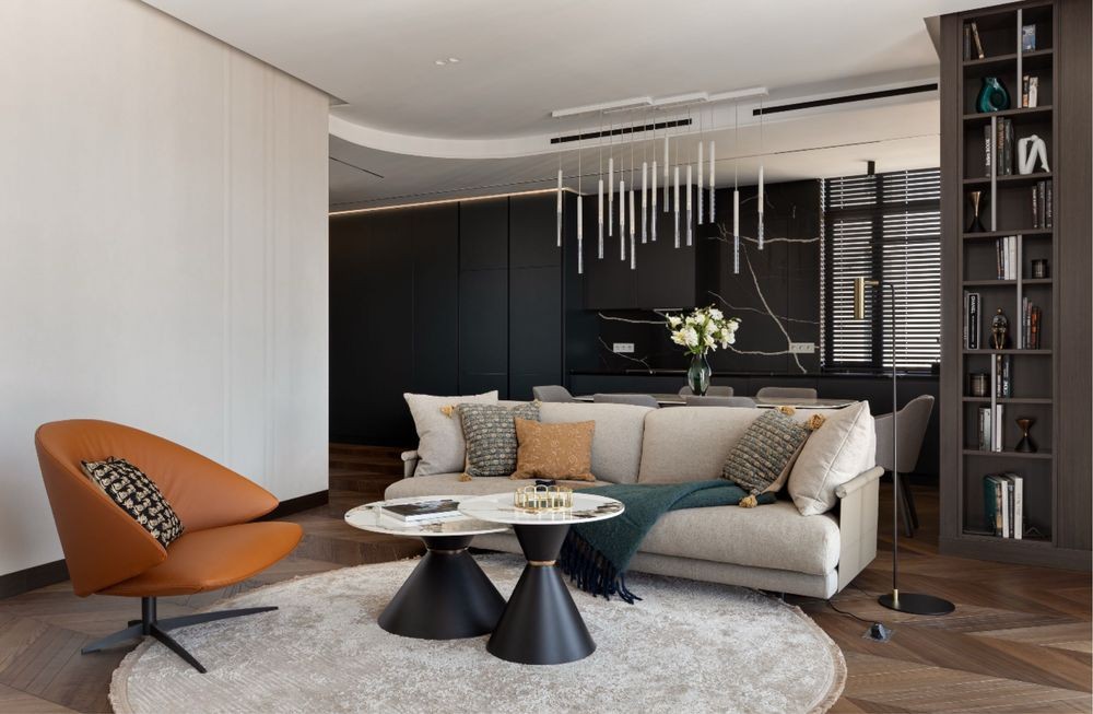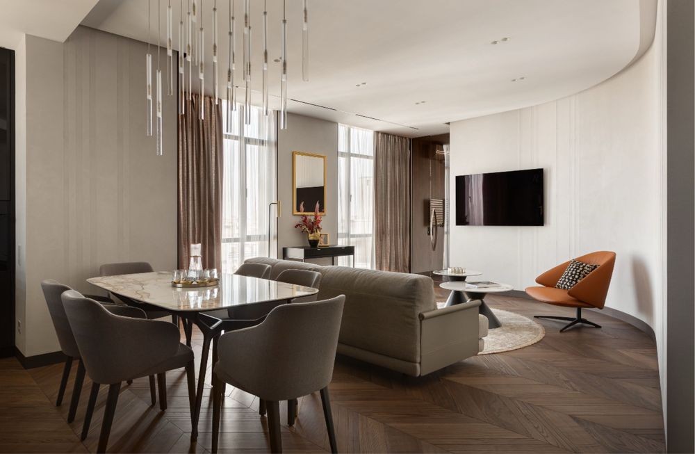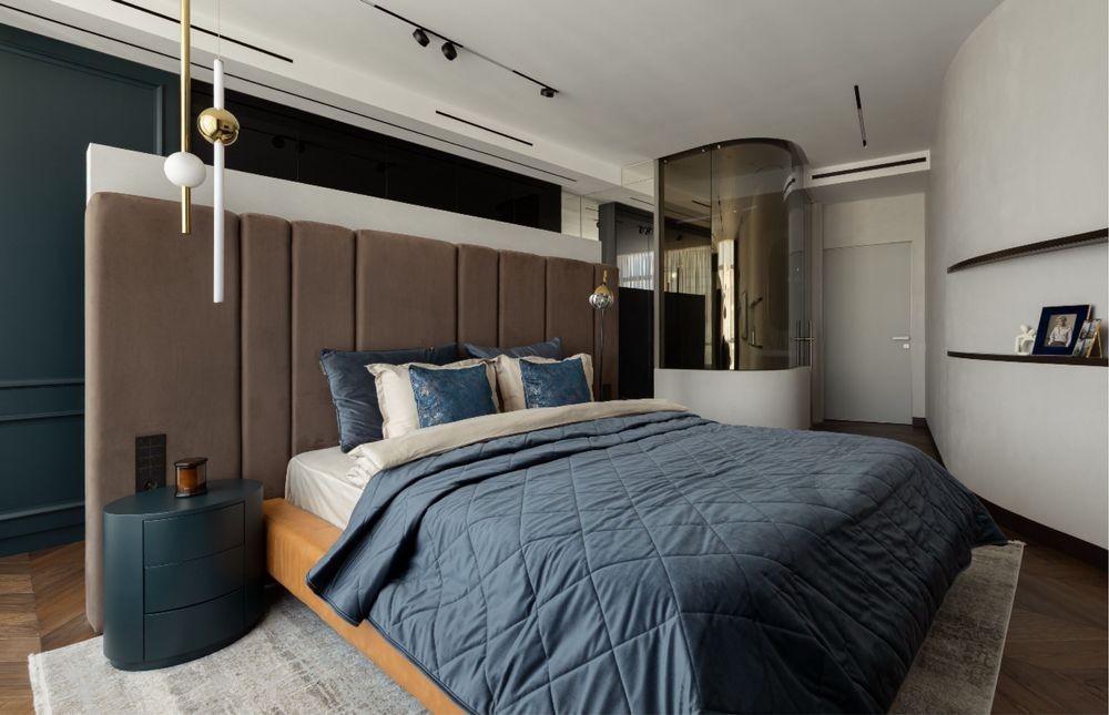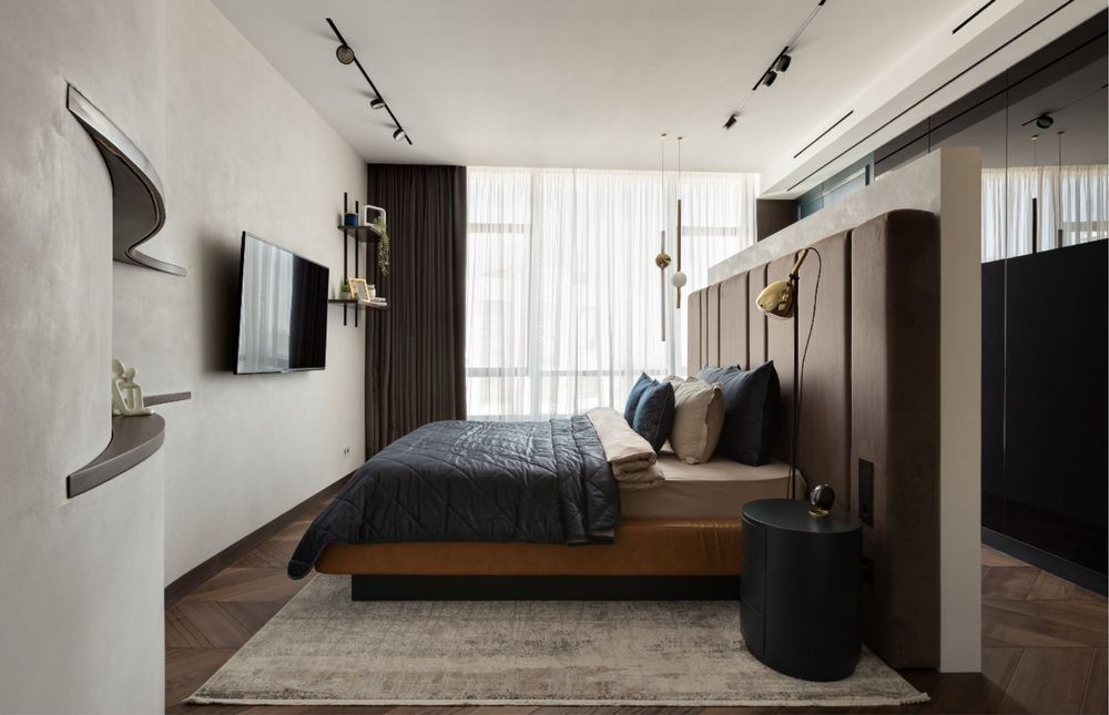 Планування: спальня з санвузлом і гардеробною, кухня-студія, гостьова спальня/кабінет, гостьовий с/в, великий хол зі сховищем.