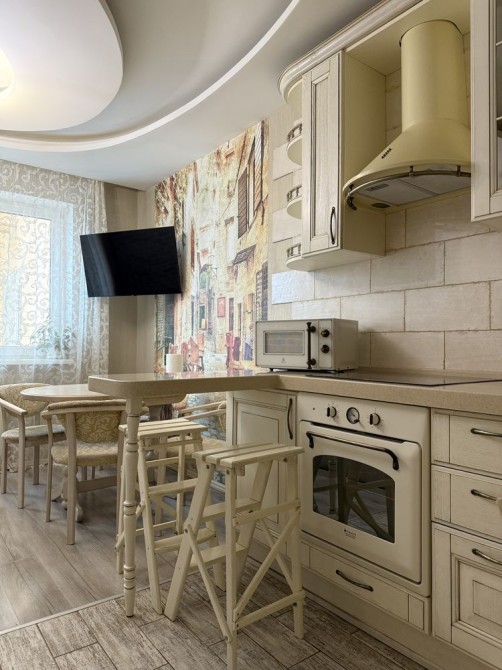 Квартира укомплектована усіма необхідними меблями та побутовою технікою.