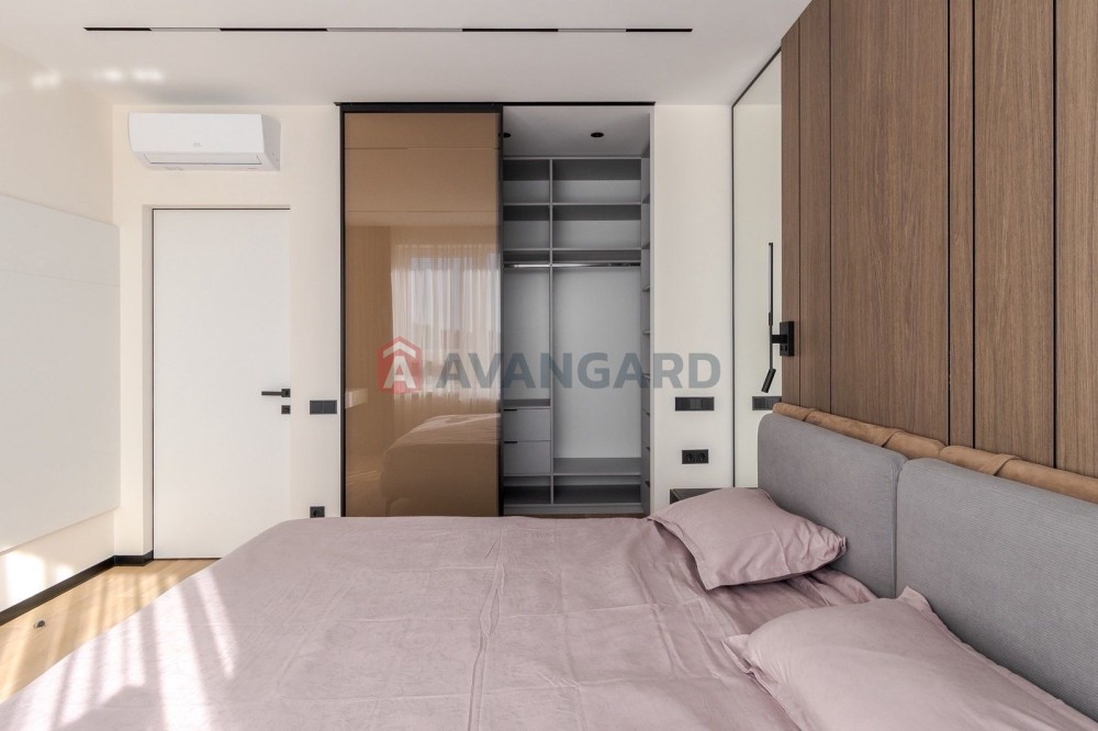 Спальня з двоспальним ліжком, стильна і простора гардероба