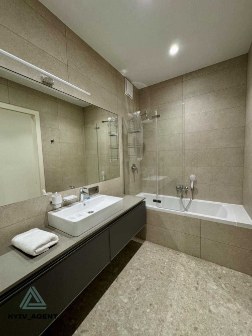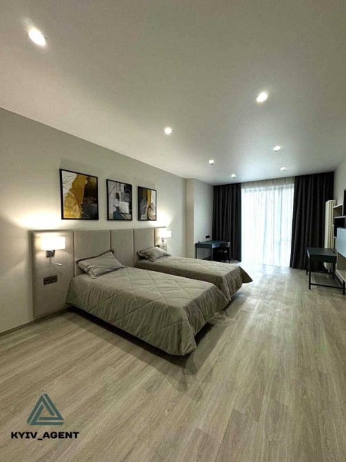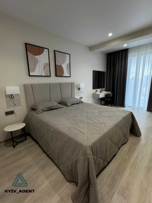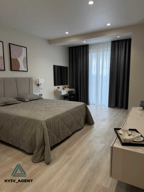 Перша здача. Пропонується в оренду сучасна квартира в новобудові біля м. Житомирська (Берестейський пр-т, 131а). В будинку є генератор (завжди є опалення, вода та працює ліфт). Квартира укомплектована всіма необхідними меблями та технікою. У кімнаті - двоспальне ліжко, розкладний диван, письмовий стіл, кондиціонер, телевізор, велика шафа для одягу. Санвузол суміщений, душова кабінка. Тихий двір, велика парковка. До метро Житомирська - 10 хвилин пішки. Вартість 16000 грн. Умови оренди: оплата за два місяці та послуги рієлтора (50%).