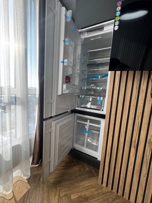 Квартира повністю вкомплектована новою побутовою технікою без жодних слідів використання. Наявні ГАЗОВА плита, духова піч, мікрохвильовка, вмонтований холодильник, прально-сушильна машина, праска, два великі телевізори, два кондиціонери, що працюють на обігрів та охолодження та інші дрібниці.