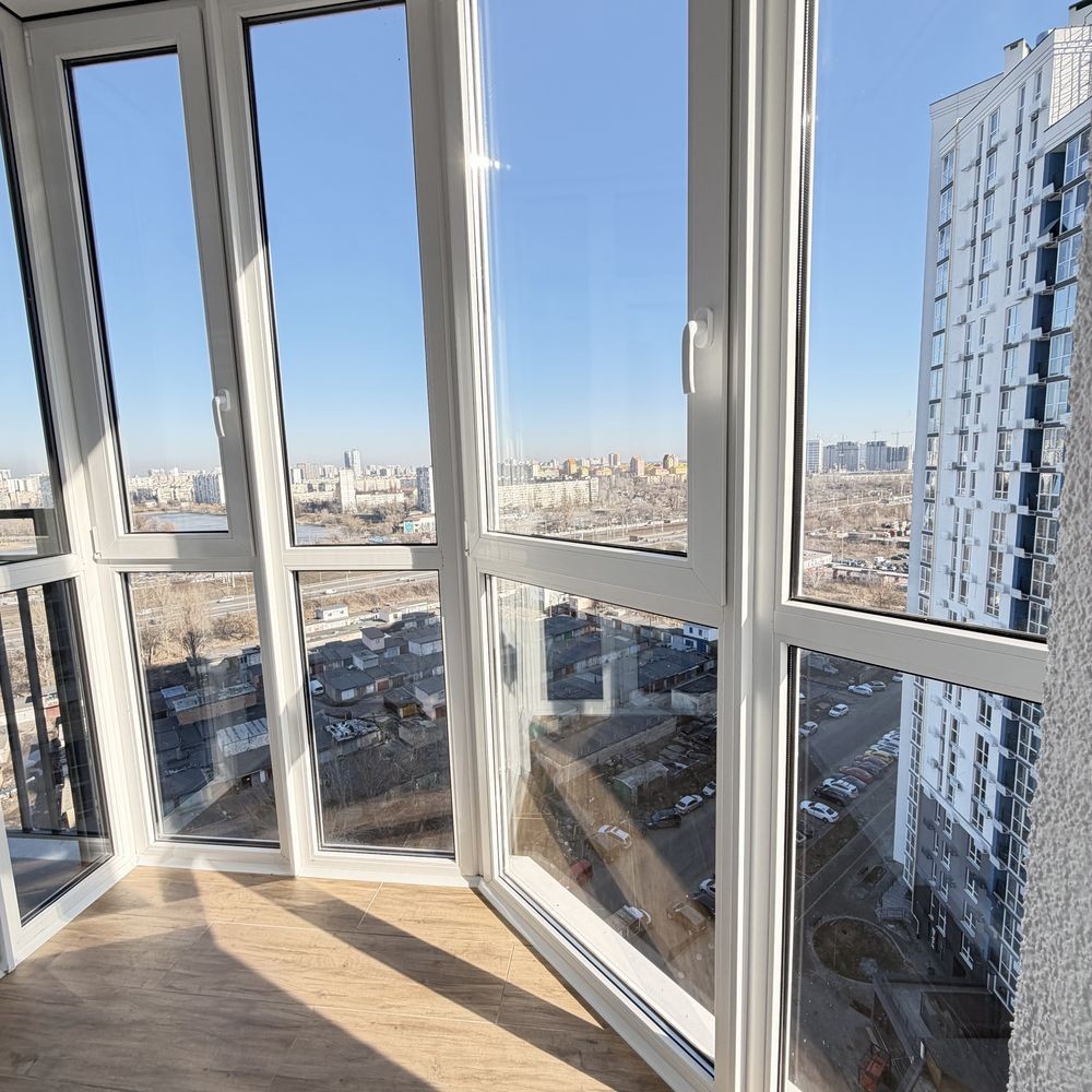Квартира розташована на 16 поверсі 25-поверхового будинку з панорамними вікнами та продуманим плануванням.