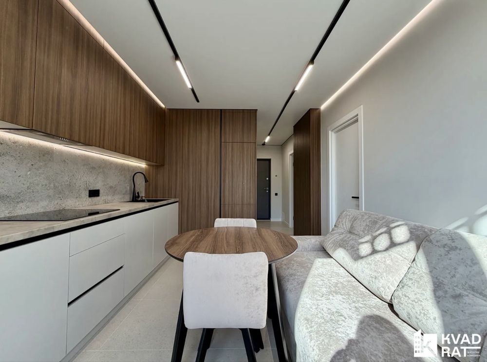У квартирі багато місця для зберігання речей та функціональне планування: кухня-студія, а велика окрема спальня кімната, санвузол із ванною та простора вхідна зона.