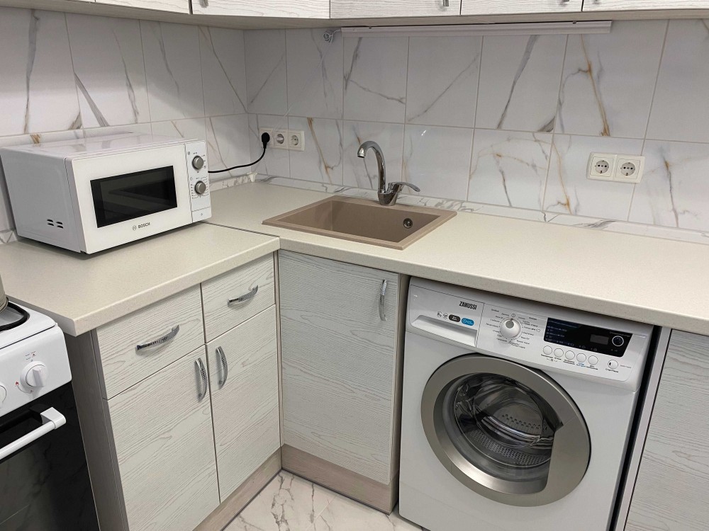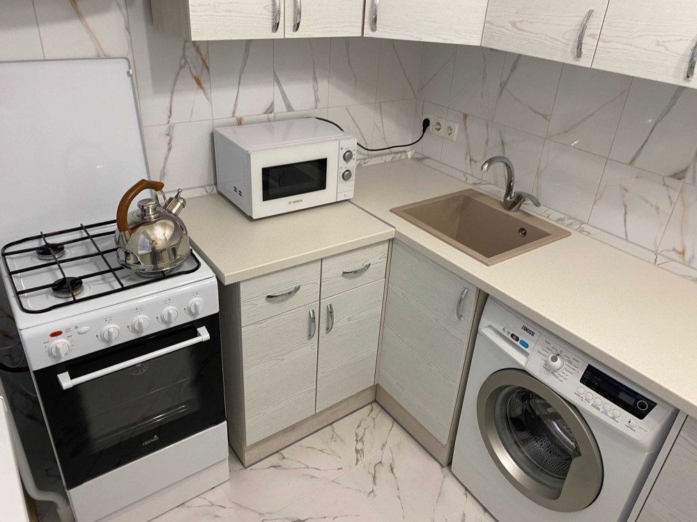 • Техніка: холодильник, газова плита з електричною духовкою, чайник, витяжка, мікрохвильова піч, бойлер на 100 літрів, телевізор, пральна машина, гігабітний роутер (покриває усю площу квартири, кожний куток), праска та гладильна дошка, є можливість встановити кондиціонер (магістралі при ремонті прокладені), також є можливість встановити посудомийну машину на 60 см шириною (при встановлені кухні передбачена ніша)
