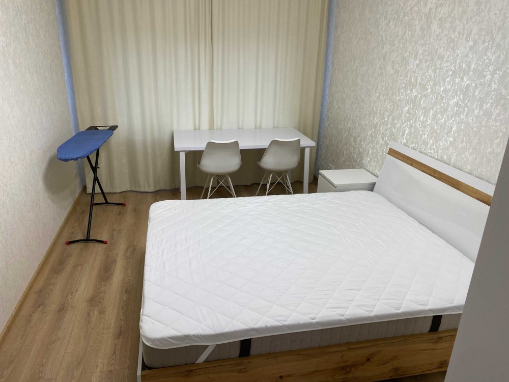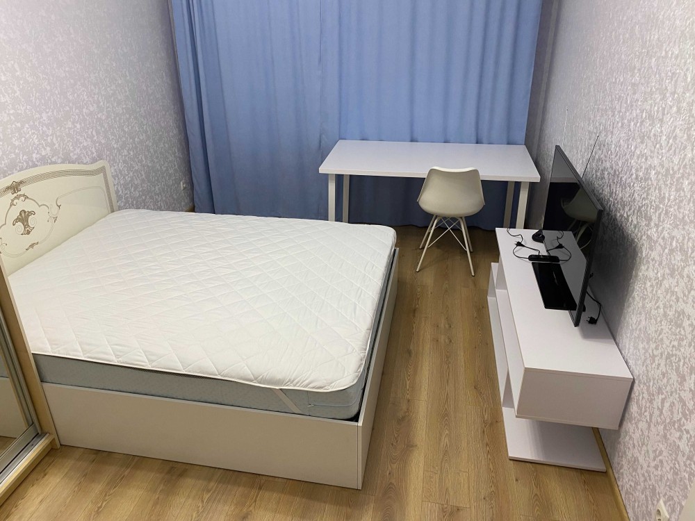 • Меблі: два комфортних ліжка 160х200 з ортопедичними матрацами, три шафи, два письмових столу, 6 стільців, кухня з підсвічуванням, лоджія засклена.