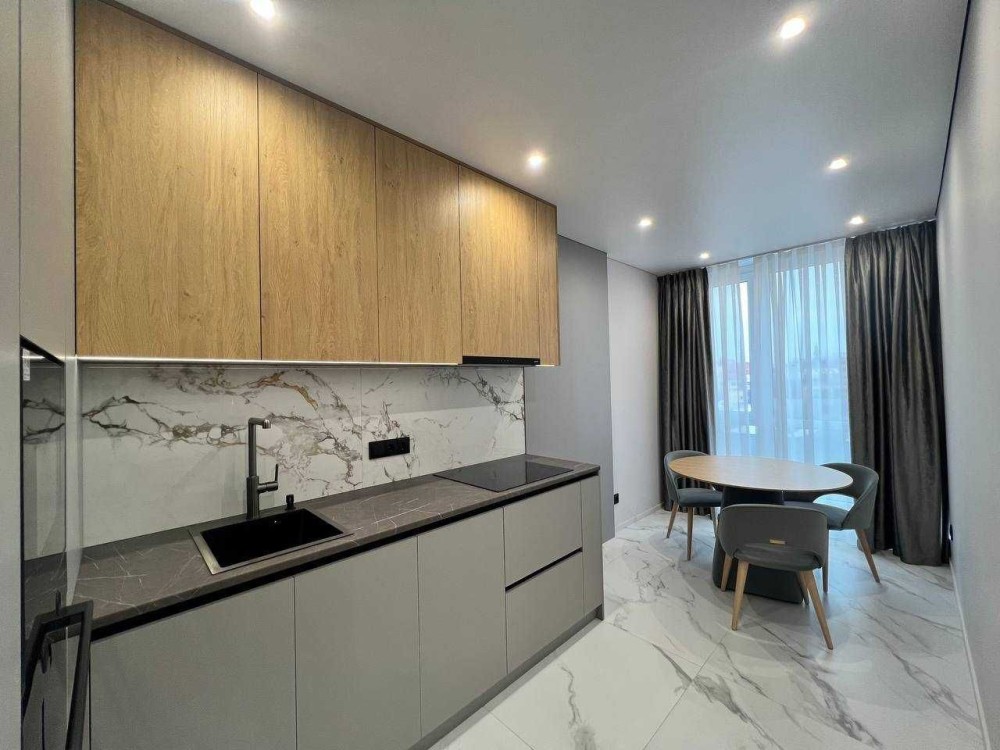 Квартира з дизайнерським ремонтом, виконана у світлих сучасних тонах. Продумане планування: простора кухня з обідньою зоною, окрема спальня та комфортна зона відпочинку.