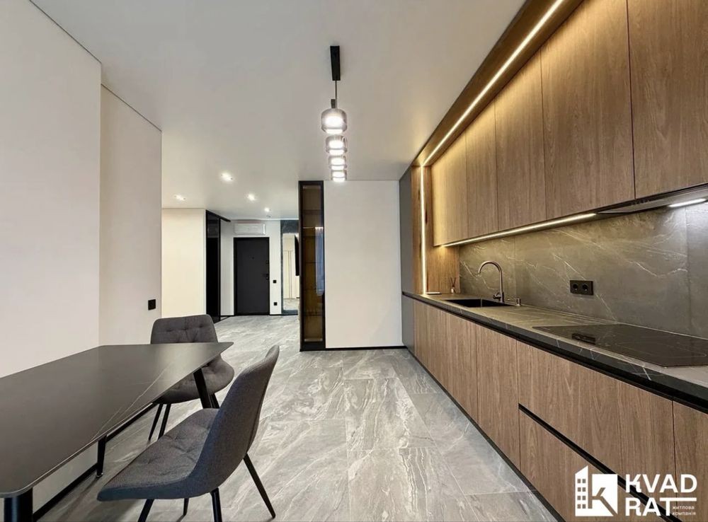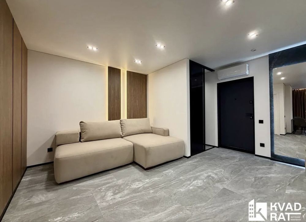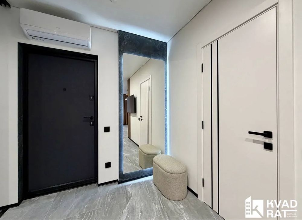 Функціонально перепланована: простора кухня, велика відпочинкова зона, окрема спальня кімната, гардеробна та суміжний санвузол із ванною. Велика вхідна зоно із кондиціонером та у повний ріст дзеркалом.
