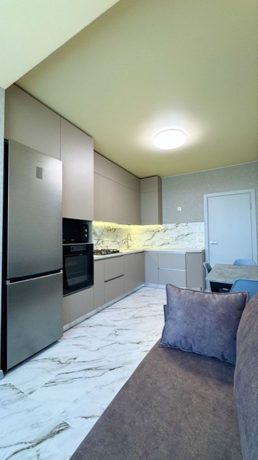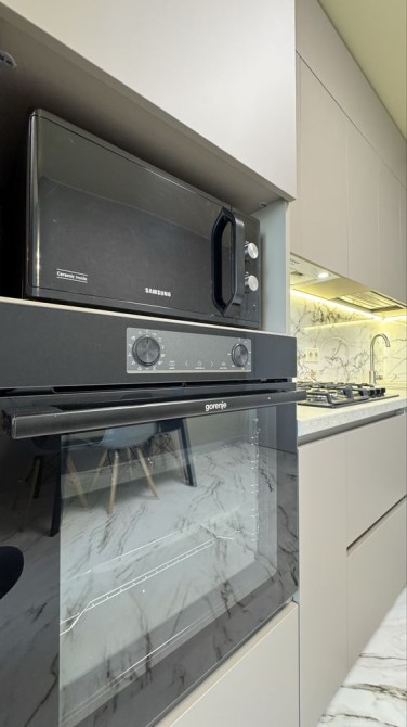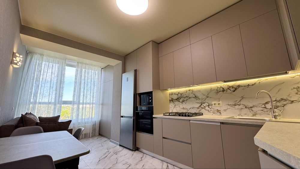 Кухня в приємних тонах, облаштована: холодильник Samsung, витяжка вбудована в шафу, мікрохвильова піч Samsung, плита і духова шафа gorenje, двоконтурний газовий котел.