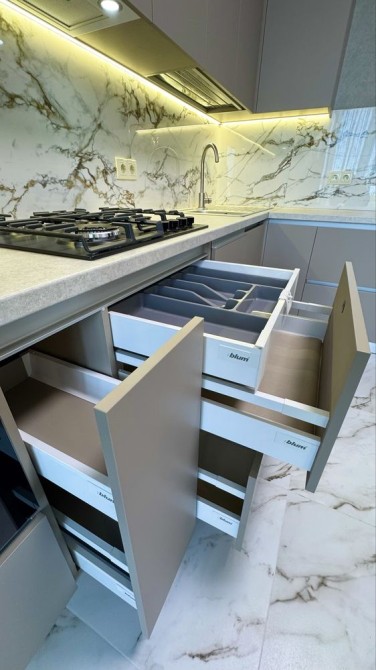 Простора кухня доповнюється зоною відпочинку: комфортний диван ( розкладається )