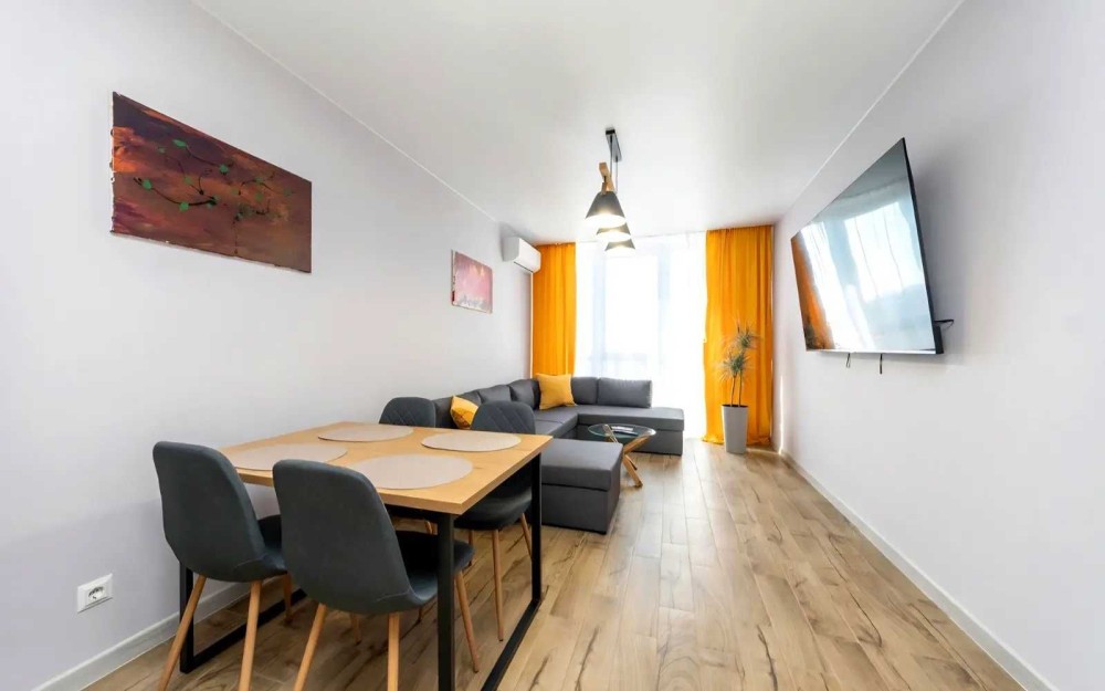 Квартира оснащена якісними меблями та сучасною побутовою технікою: