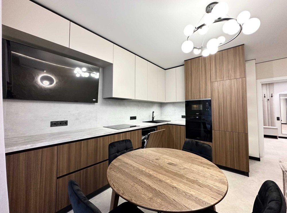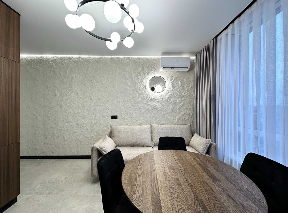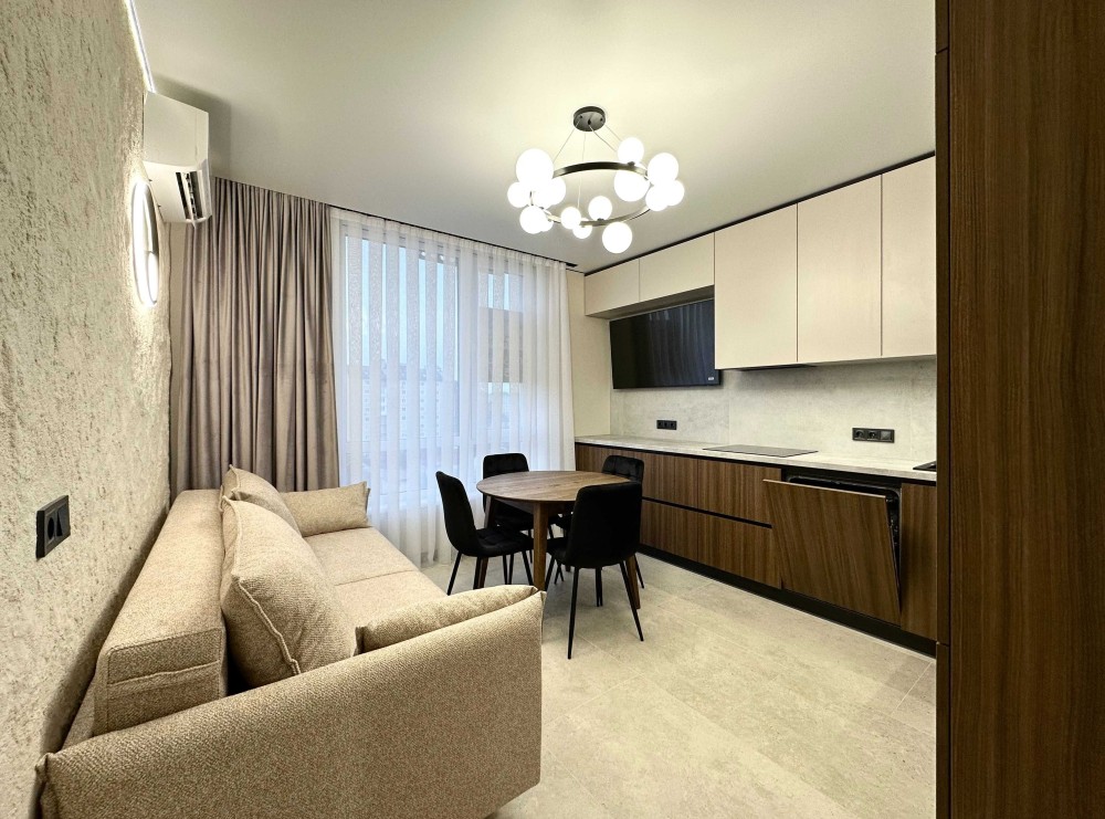 Квартира має сучасний, дорогий ремонт, повністю укомплектована меблями та побутовою технікою — все продумано до дрібниць. Простора кухня-вітальня, затишна спальня, велика зала.