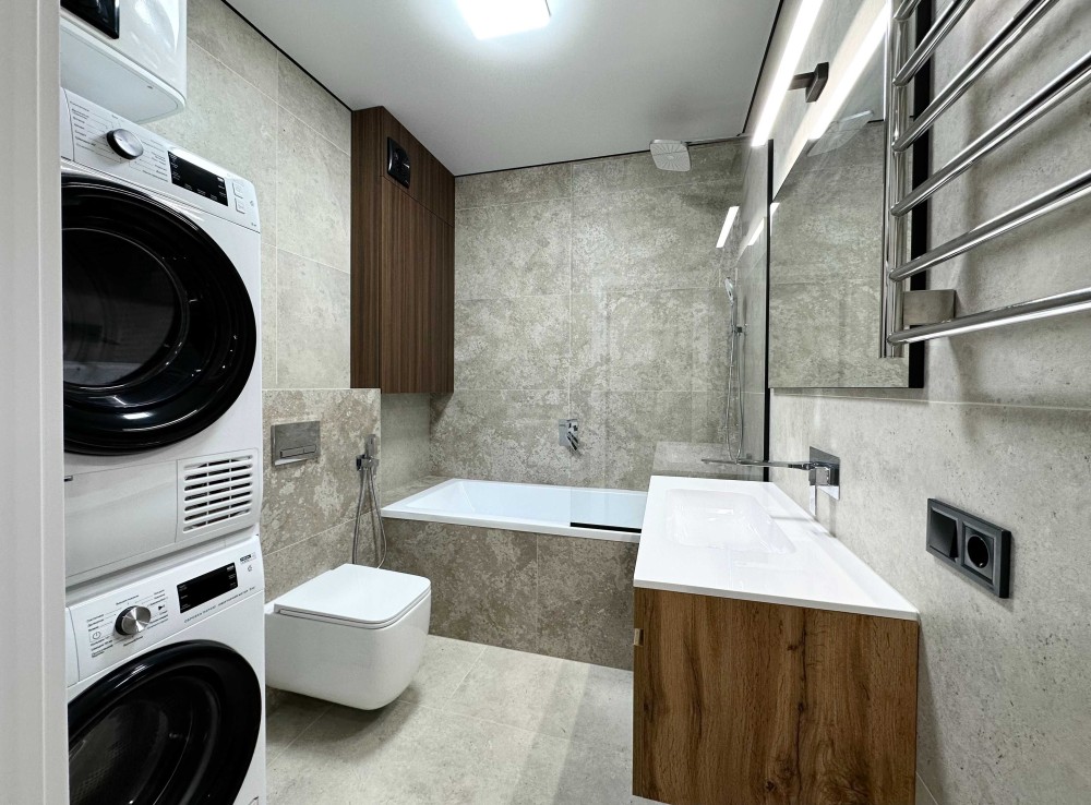 • Комфорт Кондиционер, Подогрев полов, Ванна, Мебель на кухне, Панорамные окна, Видеонаблюдение, Консъерж, Охраняемая территория, Парковочное место, Гостевой паркинг, Подземный паркинг, Лифт