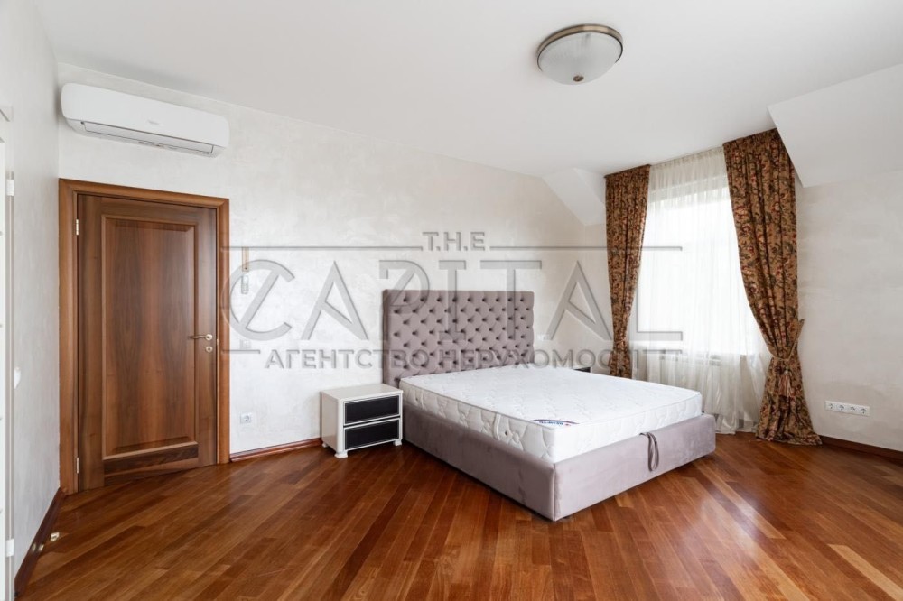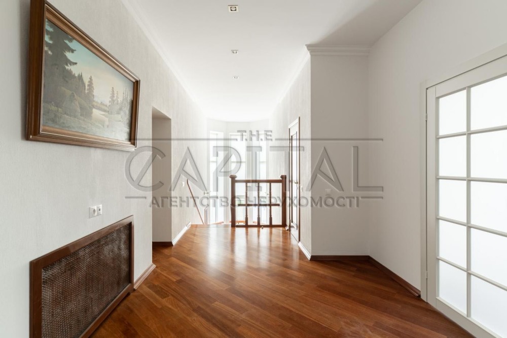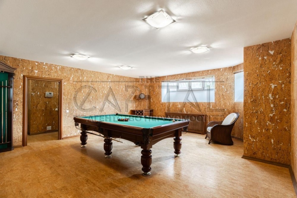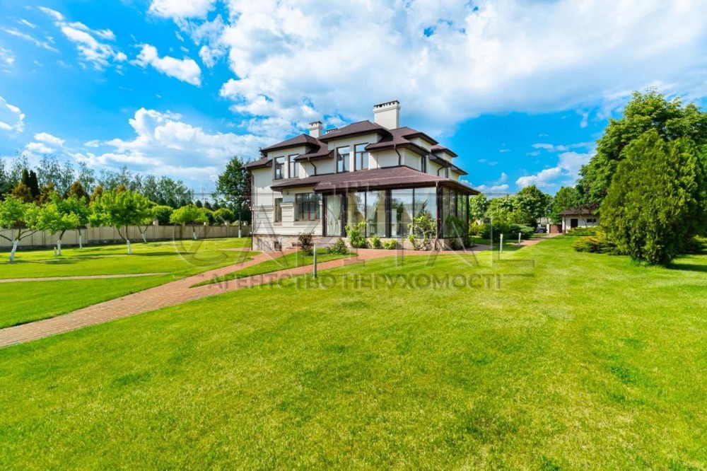 Двоповерховий будинок з цоколем (430 м2) в елітному закритому котеджному містечку Конча-Заспі, що охороняється, по вул. Озерній знаходиться на ділянці загальною площею 60 соток. У будинку є льох для вин і консервації.