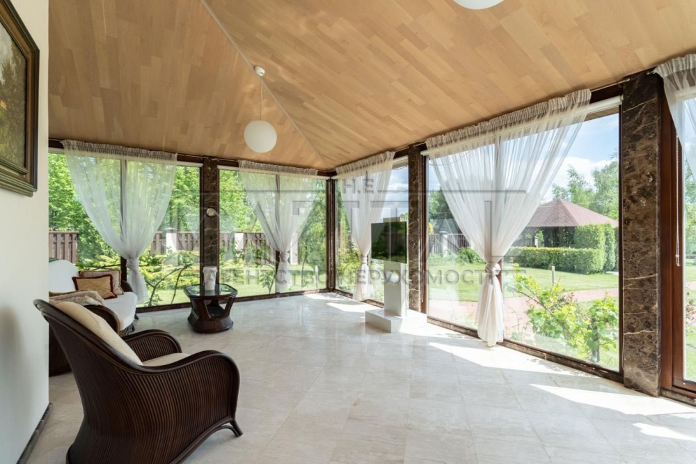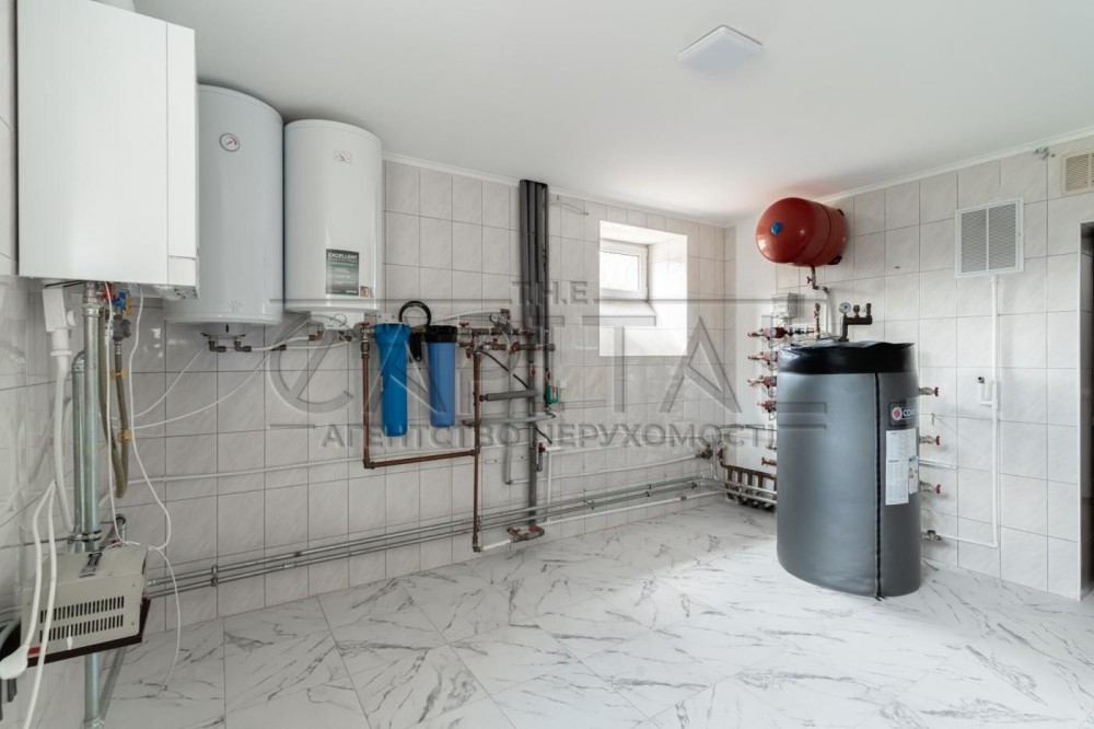 На території розташований також гостьовий будиночок для садівника або охорони. У дворі гараж на три автомобілі та власна автомийка. Усі комунікації підведені.