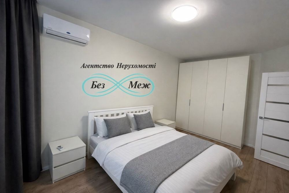 Квартира повністю мебльована та укомплектована технікою. Є двоспальне ліжко, шафа купе, кондиціонер, холодильник, духова шафа, газова поверхня, пральна машина, стіл та стільці, посудомийна.