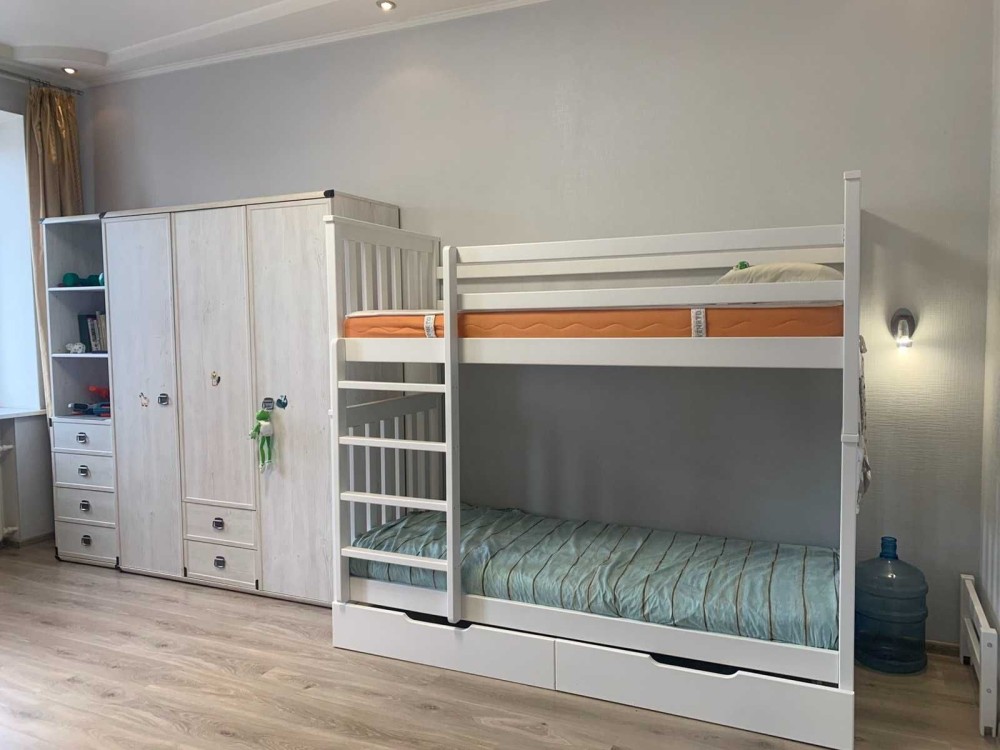 Есть все необходимое для комфортного проживания,добротная мебель,кровать,двухспальный диван,в каждой комнате шкафы,два телевизора,стиральная машина,новая посудомоечная машина,холодильник,газовая плита,пылесос,оборудована комната для детей, итальянская плитка в ванной.