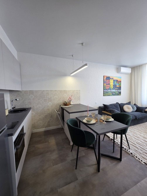 Спланирована: кухня-студия, отдельная спальня, гардеробная и санузел.