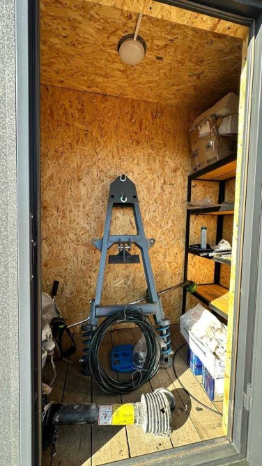 Нове побутове приміщення, утеплене, пічне опалення, дві кімнати + окремий господарчий блок. Обладнання: вентиляція, ел. освітлення, ролети, жалюзі, меблі, стелажі для інвентарю. Розмір 2,5×9,0×2,6