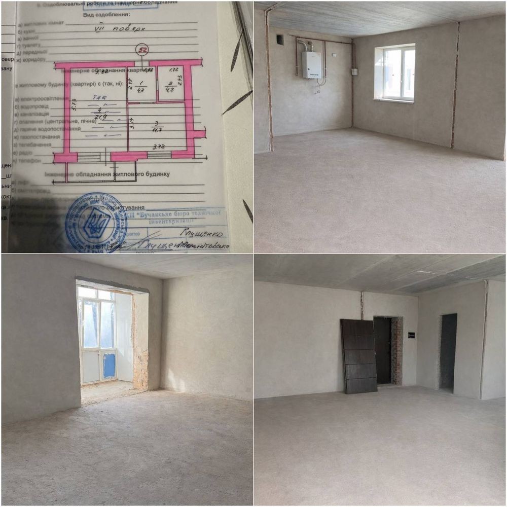 Виконано: стяжка підлоги, штукатурка стін