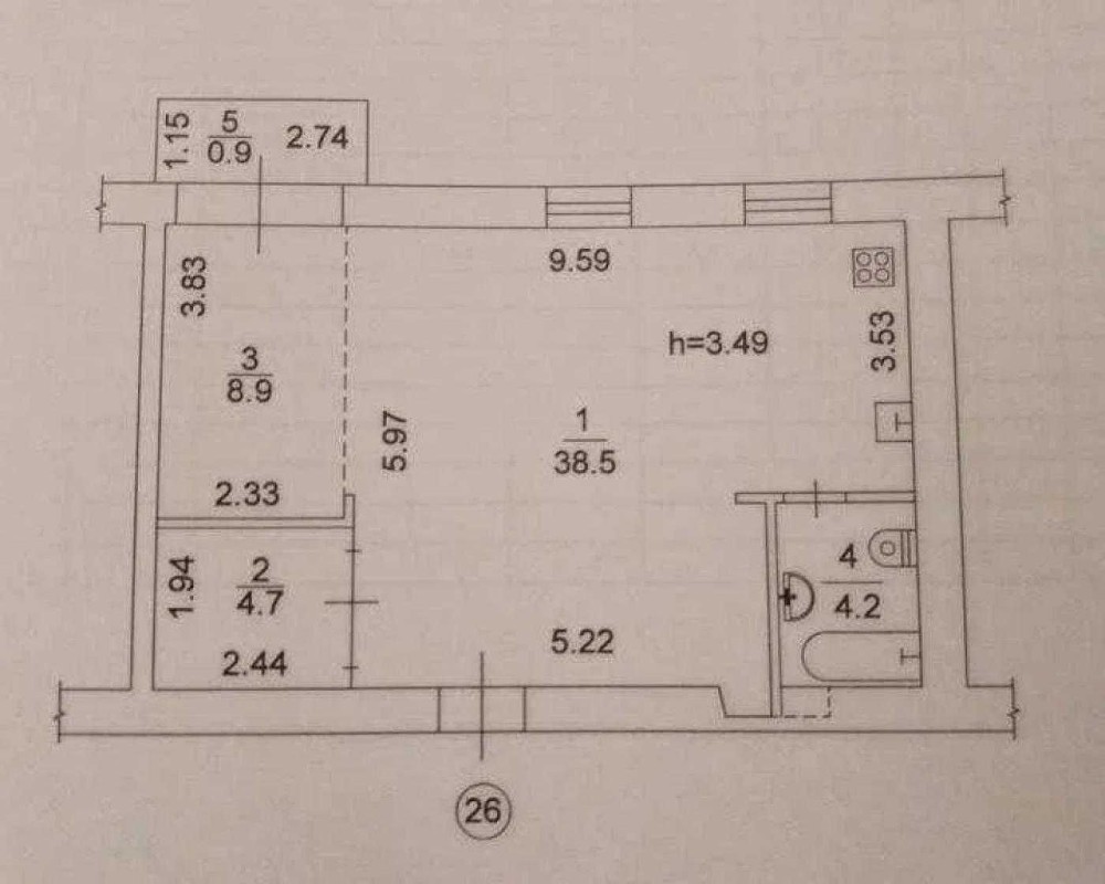Висота стелі: 3,5 м