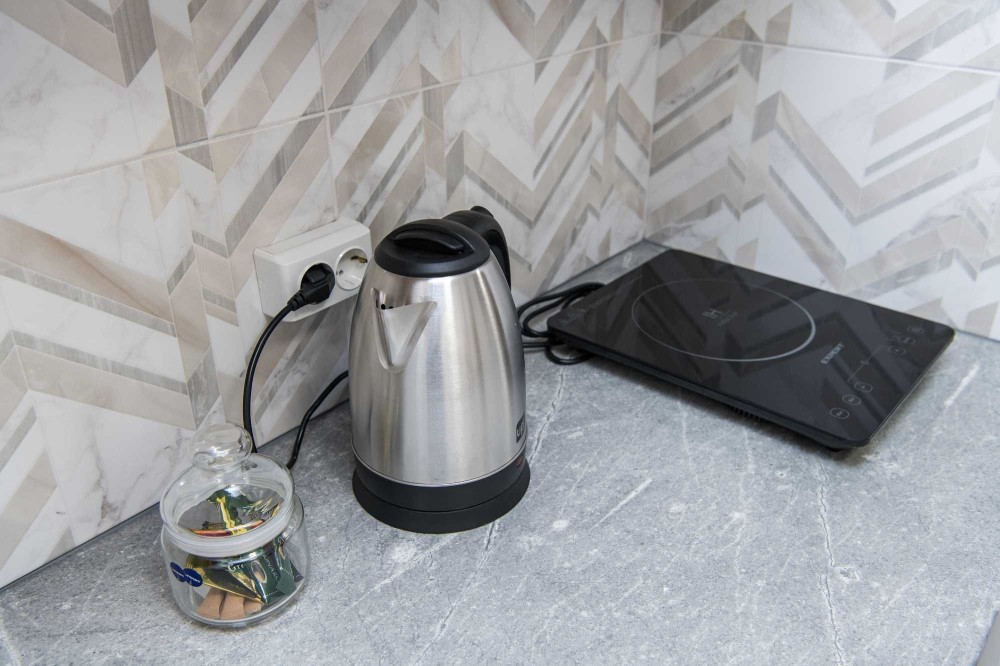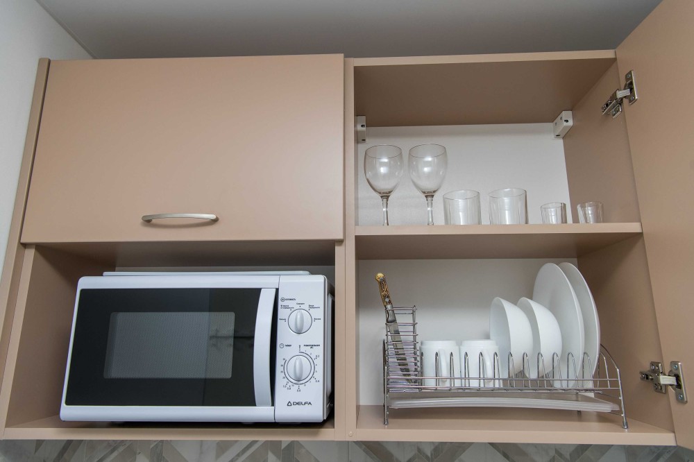 Кухня: Плита, мікрохвильова піч, електрочайник та повний набір необхідного посуду.
