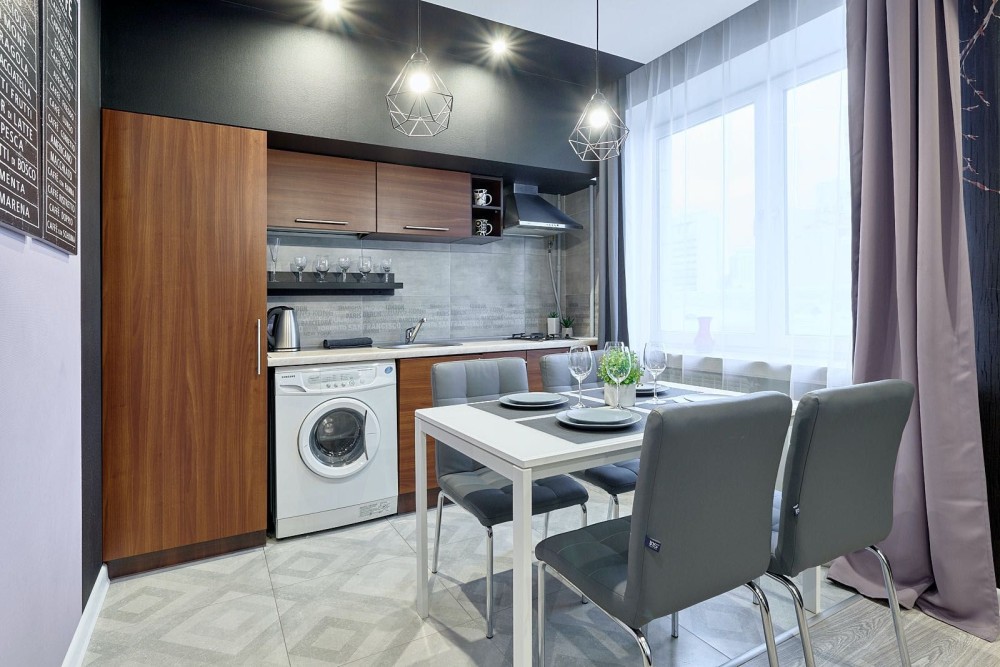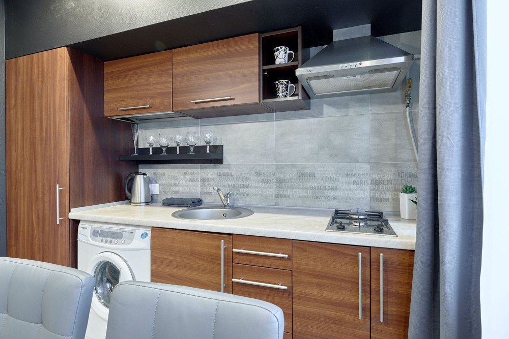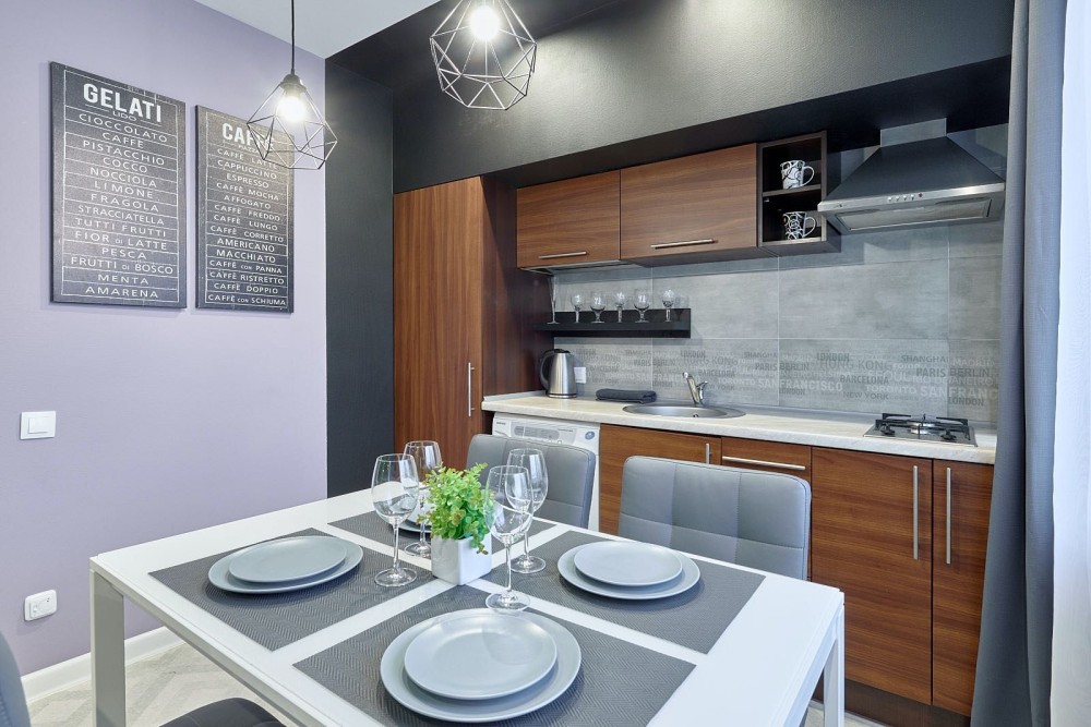 В апартаментах є сучасна кухня з мікрохвильовою піччю, чайником і холодильником, спальна зона з ліжком king-size і сучасна ванна кімната. Підігрів підлоги робить апартаменти особливо затишними в зимовий час. Загальна площа становить 45 м2.