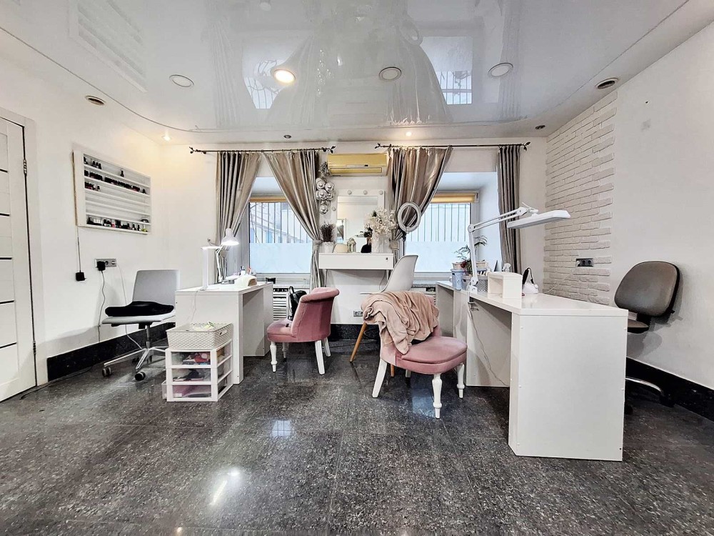 Функціональне та продумане планування: Великий просторий зал. Кабінет масажу з душовою кабіною. Окремий кабінет для педикюру з кріслом та професійним обладнанням. Повністю обладнана кухня. Зона відпочинку для персоналу та клієнтів.