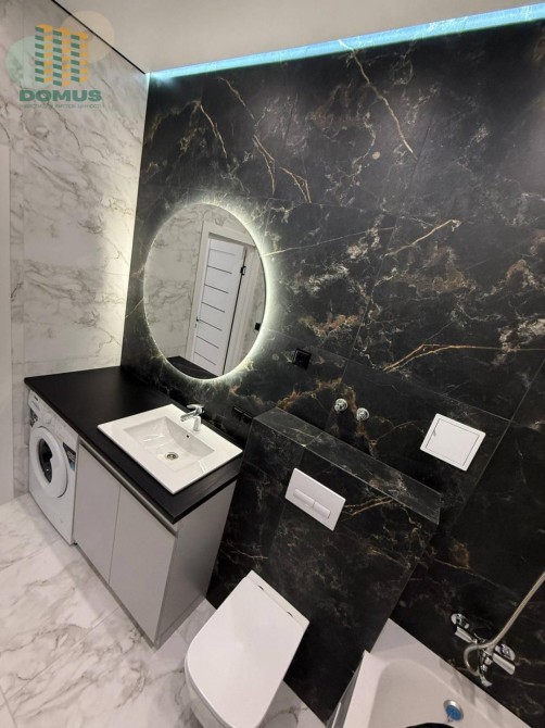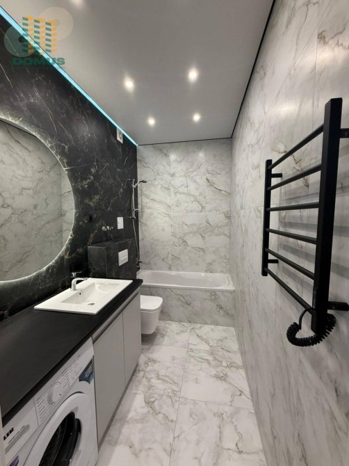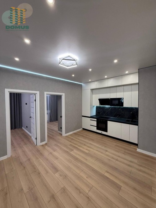 2 комнаты, кухня-студия. При входе вместительная уборная. Встроенная техника, бойлер, стиральная машина, посудомойка, смарт соч. Много мест хранения.