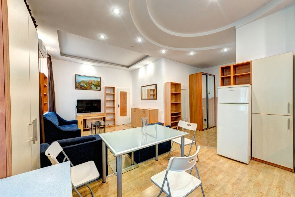 Хорошая квартира-студия в доме магазина "Виктор", меблирована, современній ремонт и дизайн, интернет, кухонные и банные принадлежности, бытовая техника. Ванна, Набор для душа, Гардероб, Охраняемая территория, Парковочное место. Отчётные документы