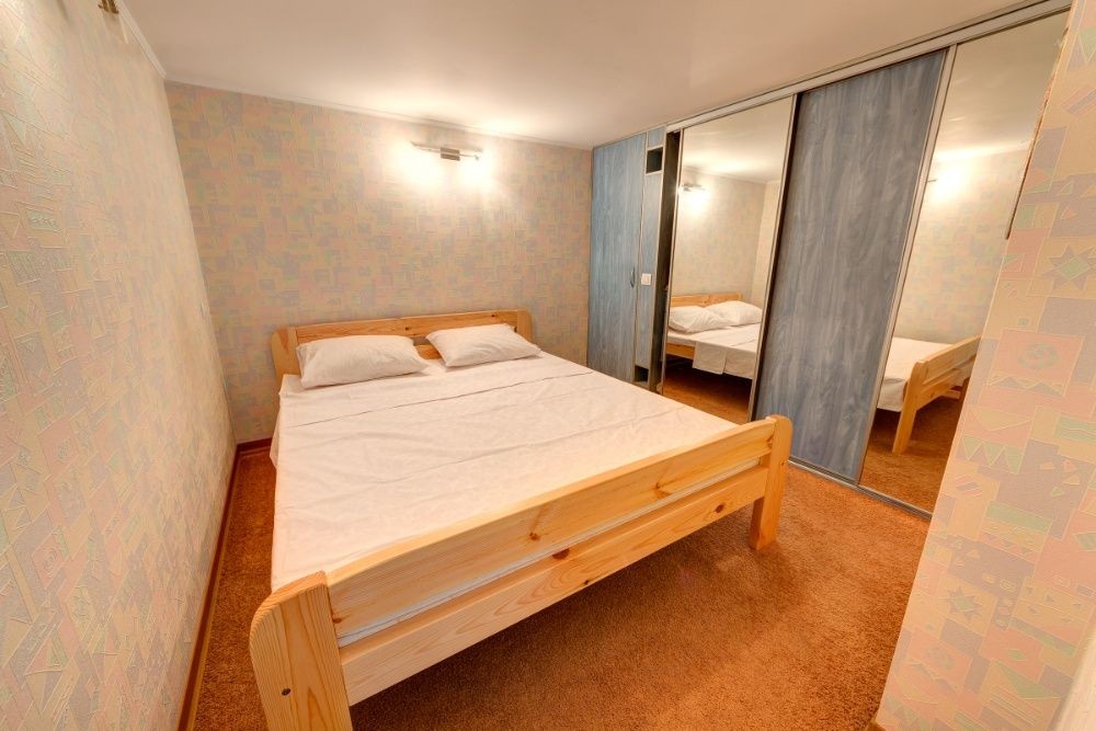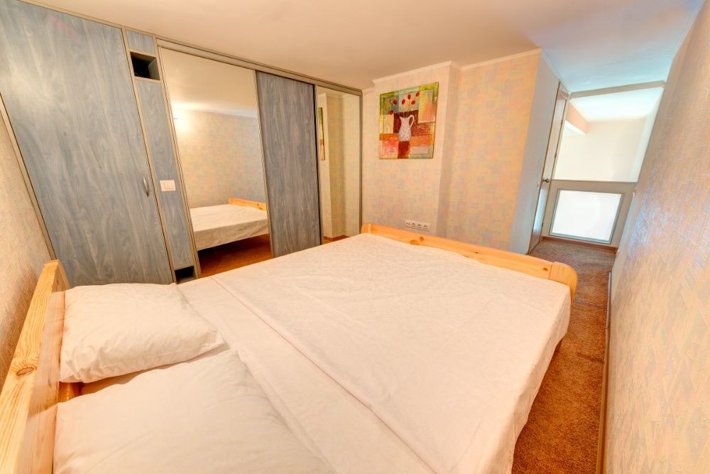 Есть большая шикарная двухспальная кровать, диван, интернет WI-FI, кабельное 60 каналов, горячая вода круглосуточно, микр. печь, стиральная машина-автомат, электрочайник, фен, утюг, гладильная доска. Цена от 650 до 750 в сутки в зависимости от срока проживания(чем больше дней тем дешевле), а также от сезона. Минимальная цена возможна на одного человека только переночевать или на срок более 25 дней. В выходные и праздничные дни цена может быть дороже. Цена почасово от 150 грн. в час (но не менее чем на 450 грн. в дневное время). Выдаю документы для командировочных на нужную Вам сумму.