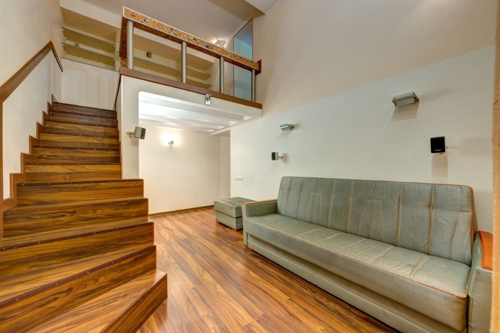 Гостиная с уютным двухместным раскладным диваном всегда отлично освещена, благодаря огромному окну в 2 этажа.