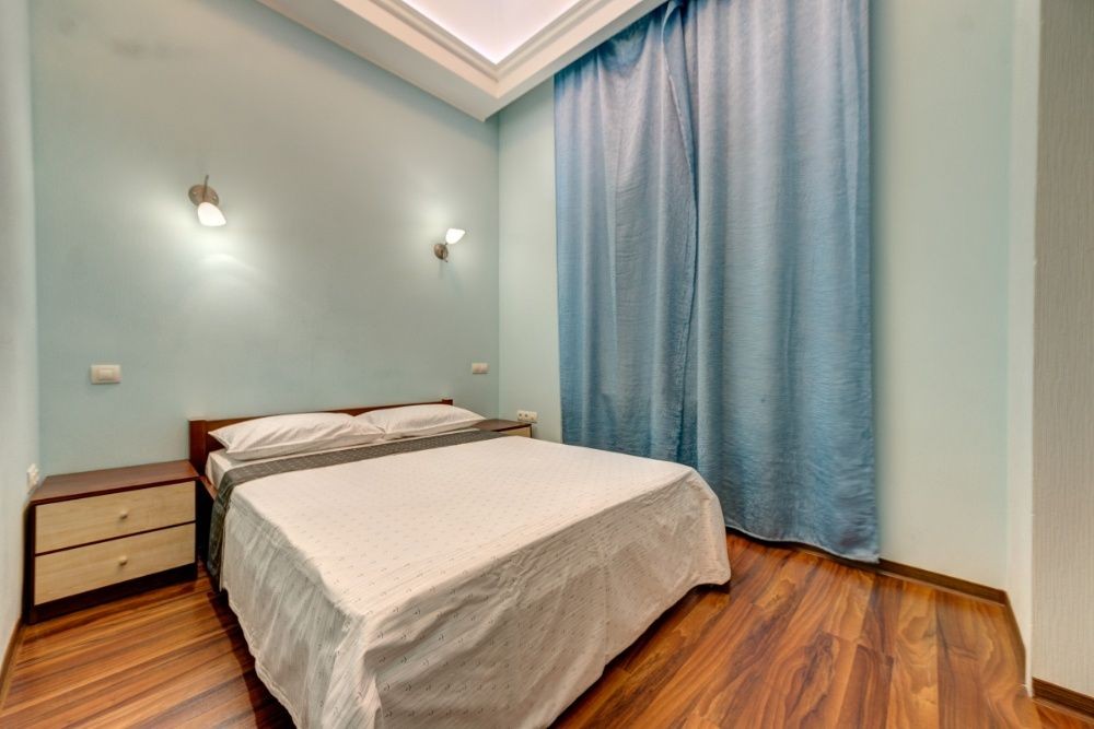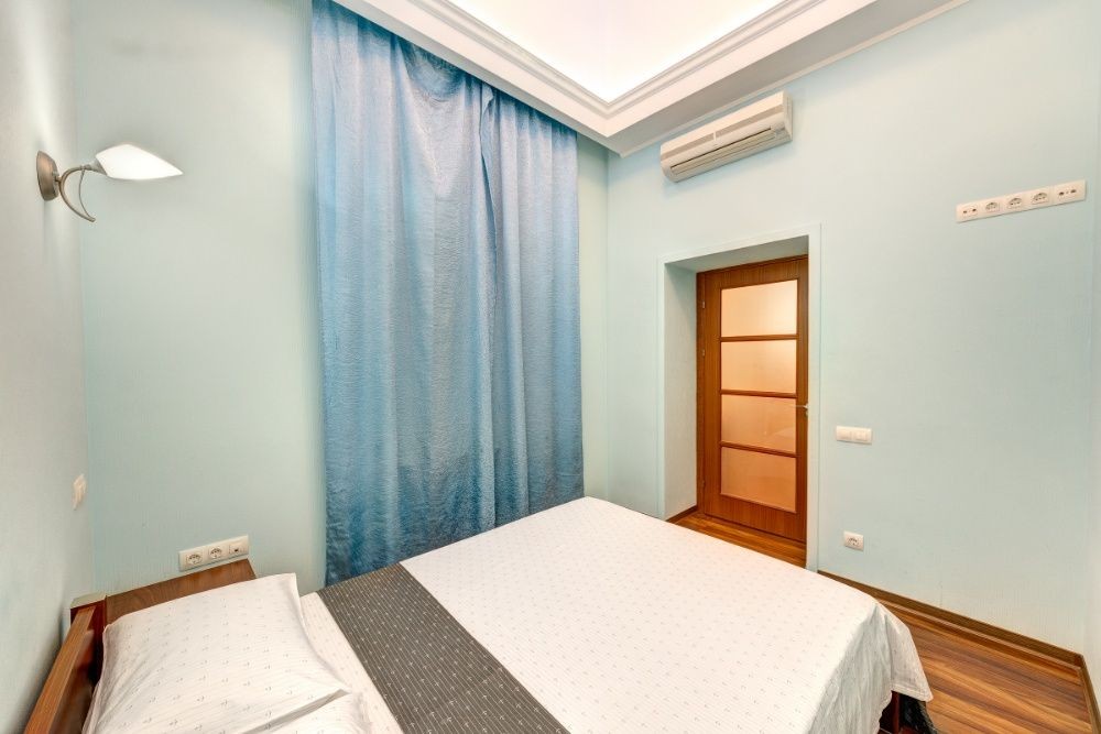 Роскошная трехкомнатная квартира станет отличным решением для компании из 6 человек или 3 семейных пар. Апартаменты расположены в центре города, по адресу ул. Институтская 25. В пешей доступности находятся Мариинский дворец, Верховная Рада и другие объекты культуры. В нескольких минутах ходьбы – станция метро Арсенальная (600 м)