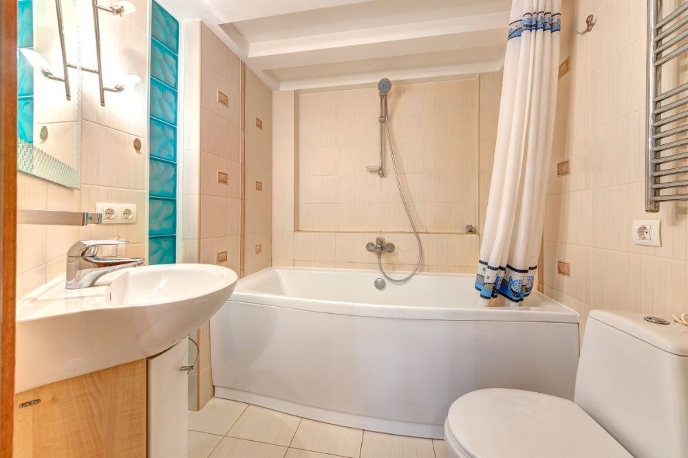 В квартире есть две ванных комнаты. В одной расположена большая ванна, в другой – душ.