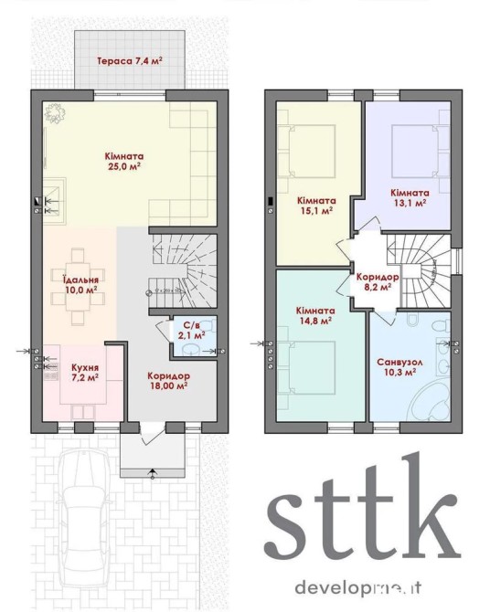 Таунхаус має власний просторий передній заїзд і задній двір площею 1,5 сотки, що забезпечує комфорт та приватність. Завдяки внутрішньому розташуванню будинок буде дуже теплим та економним у використанні ресурсів.