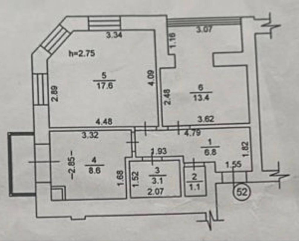 Площа 52.4 м2