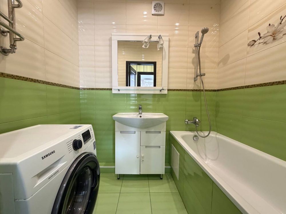 Квартира з ремонтом і меблями, автономне опалення газовим котлом, тепла підлога на кухні, є кондиціонер; с/вузол роздільний з ванною, тарифи всі місцеві; додатково є тамбур на дві квартири.