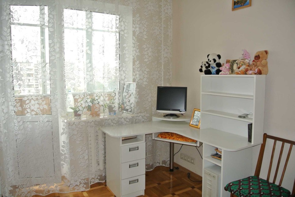 Кімната мебльована: диван, шафа-купе, комп’ютерний стіл. Побутова техніка: пральна машина, холодильник, мікрохвильова піч, бойлер.